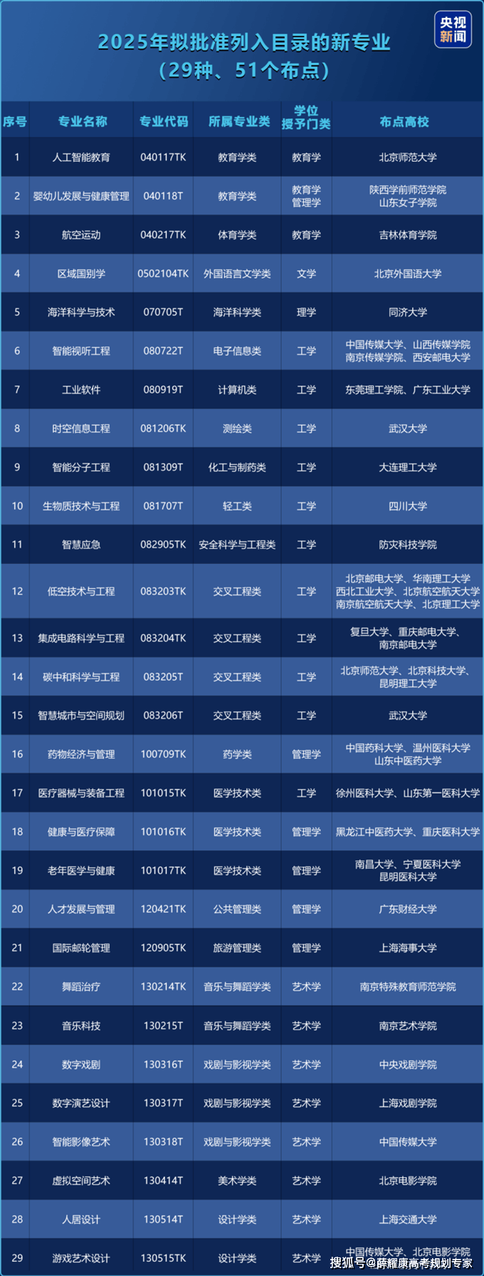 2025 年工做演讲提出要推进贸易航天、生物制制、量子科技、具身智能、6G等行业成长。取这些范畴相关的专业,如航空航天工程、飞翔器设想取工程、生物工程、生物手艺、材料科学取工程、量子消息科学、物理学、人工智能、机械人工程、从动化、认知科学取手艺、电子消息工程、收集工程、电子消息工程、通信工程等,将正在国度计谋鞭策下送来优良的成长机缘。本年,教育部发布2024年度通俗高档学校本科专业存案和审批成果,并同步更新发布《通俗高档学校本科专业目次(2025年)》。为更快响应国度计谋,初次成立了计谋急需专业超凡设置机制,对于地方最新摆设、高度关心的计谋范畴,斥地相关专业设置立即响应“绿色通道”。增设的29种新专业,充实表现国度计谋、市场需乞降科技成长牵引。