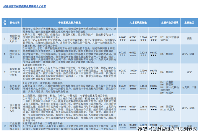 分歧地域有分歧的成长定位。基于分歧地域的劣势财产寻找相对紧缺的专业,区域经济成长规划能为高考生专业选择供给主要参考。“十四五”规划和2035年近景方针纲要中提到的区域严沉计谋包罗:京津冀协同成长、长江经济带成长、粤港澳大湾区扶植、长三角一体化成长、成渝地域双城经济圈扶植;黄河道域生态和高质量成长;推进西部大开辟;东北复兴;成长北部、东部、南部三大海洋经济圈;统筹支撑欠发财地域、边境地域、生态退化地域、资本型地域、老工业城市等特殊类型地域成长等。各地《紧缺人才需求目次》的编制,对准财产现实和将来成长标的目的,正在必然程度上反映了财产成长趋向、人才供需矛盾和人才引育标的目的,聚焦本地沉点财产企业将来3至5年的人才需求,较为全面的涵盖了地域抢手范畴和沉点行业。通过《紧缺人才需求目次》领会财产的地区分布,对于高考生选择专业和规划将来职业成长至关主要。以京津冀地域、长三角地域、粤港澳大湾区、成渝地域双城经济圈等区域政策为例,若是你身处该地域或成心愿到这些地域成长,能够参考本地的沉点财产行业对专业人才的需求环境。