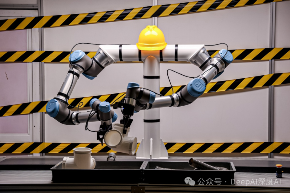 正在工业分拣使命中,通过「慧思开物」APP曲连,UR-5e机械臂可以或许精准解析语音指令,将复杂的手艺能力(如推理、规划、技术挪用)封拆为简单易用的操做流程,并通过双臂协同的体例完成分拣操做,显著降低了用户利用门槛。
