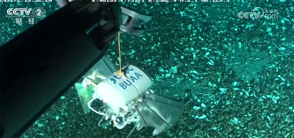 这是深海小型机械人正在水深1384米的中国南海海马冷泉进行测试的镜头,测试中深海小型机械人逛动、滑行、变形和爬行等科目全数成功完成,正在深海中的表示以至跨越了地面尝试室。