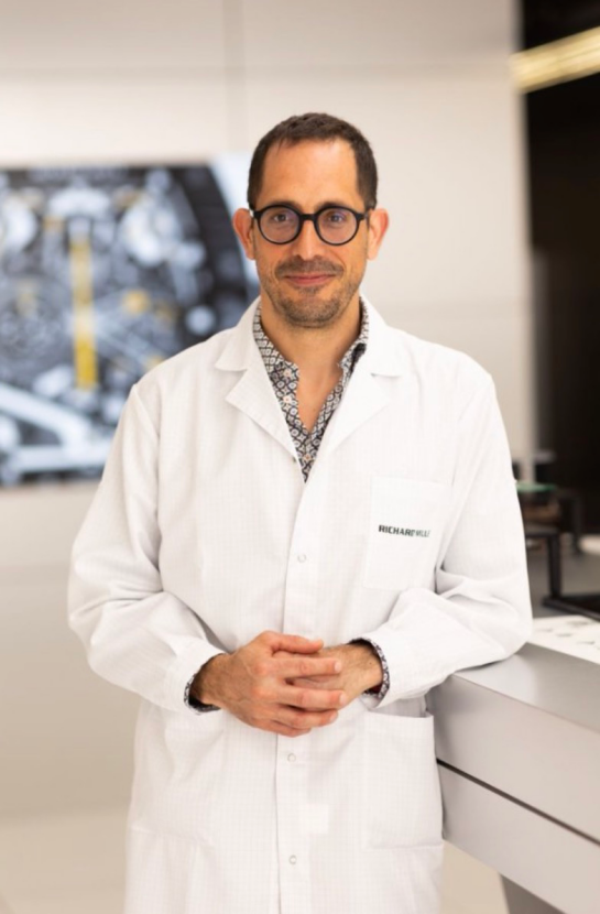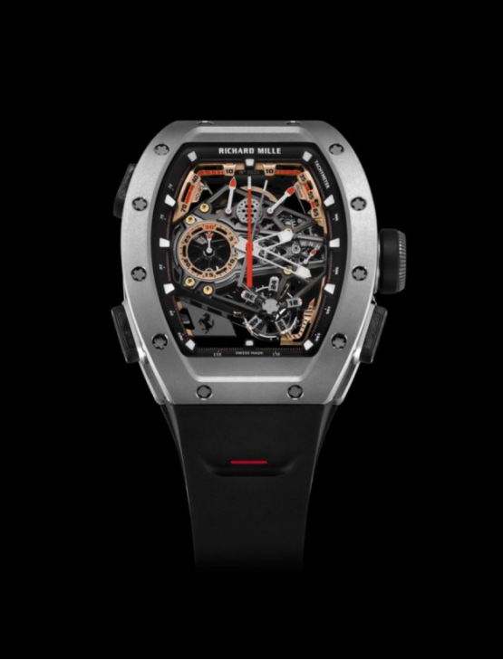 表盘反面的发条盒宝石镶嵌设想灵感源自Ferrari V8引擎的离合器轮,而488 ChallengeEvo、Daytona SP3和SF90 Stradale等车型充满力量感且棱角分明的外部细节,则影响了表壳制型、按钮和时标的设想。正如现代Ferrari 仪表盘的焦点元素—转速表,正在RM 43-01 上,30 分钟计时盘的镂空设想成为表盘核心,也成为手表“底盘”三维结构设想中惹人瞩目的环节。