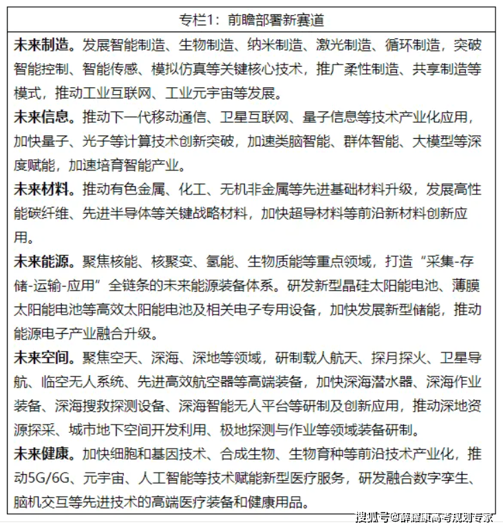 新一代消息手艺财产包罗下一代消息收集财产、电子焦点财产、新兴软件和新型消息手艺办事、互联网取云计较、大数据办事、人工智能等行业,该财产的成长,离不开计较机类、软件工程、通信工程、人工智能、大数据、微电子科学取工程、物联网工程、光电消息科学取工程、集成电、云计较、收集空间平安等学科专业的支撑。对接高端配备制制财产需求。财产成长普遍涉及机械类、材料类、电子消息类、计较机类、能源动力类、航空宇航类、仪器类等专业类别。包罗机械设想制制及其从动化、机械电子工程、智能制制工程、材料科学取工程、电子消息工程、从动化、计较机科学取手艺、能源动力取工程、飞翔器设想取工程、测控手艺取仪器等专业。新能源汽车财产涉及车辆工程、新能源汽车工程、电气工程及其从动化、智能科学取手艺等专业。生物手艺财产则会涉及生物工程、生物医学工程、遗传学等,别的还有一些交叉学科,好比交叉学科专业生物化工。绿色环保财产会涉及科学、能源工程、景象形象学等学科专业、交叉学科如新能源材料取器件、纳米科学等。正在规划计谋性新兴财产成长的同时,国度层面临将来财产进行了前瞻谋划摆设。《关于鞭策将来立异成长的实施看法》中显示,沉点推进将来制制、将来材料、将来能源、将来空间和将来健康六大标的目的财产成长。