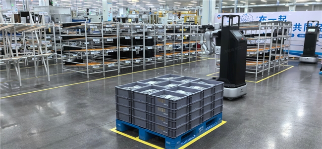 此次合做的冲破性立异,通过具身机械人 + AMR 建立了深度协同系统,此中具身机械人A2-W担任多层料架周转箱取放,AMR担任车间内沉载整托物料运输。依托出产系统的智能派单取动态叫料机制,AMR将物料从挑撰室配送至线边上料点,具身机械人A2-W可从动识别箱体、自从调整姿势,完成拆垛上料及空箱收受接管,实现从物料出库、产线上料、空箱收受接管流转的全流程功课。该系统既阐扬了具身机械人对周转箱的泛化功课能力以及复杂场景的自顺应能力,也充实操纵 AMR正在长距离、高负载运输中的效率劣势,处理了保守从动化设备正在多车间、多品类场景下的柔性适配痛点,为制制业周转箱拆码垛、搬运、上下料等场景供给了可间接复用的协同方案。