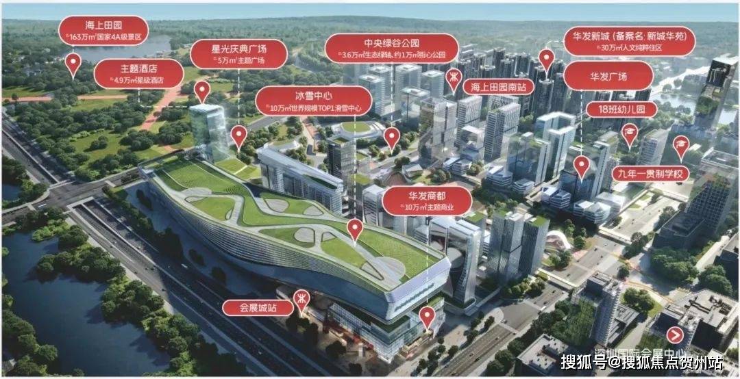 同时,板块内结构超300万㎡会展分析体,涵盖国际酒店群、总部办公、生态公园等业态,并引入希尔顿、洲际等品牌。