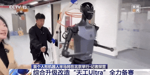 天工队此次出和的选手为“天工Ultra”,身高180cm、体沉55kg、最高配速12km/h,平均配速10km/h。