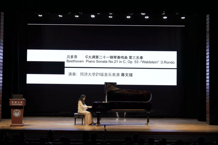 音乐会从集古典从义之大成、开浪漫从义之先河的做曲家贝多芬所创做的《C大调第二十一钢琴奏鸣曲》起头。张弛教员讲到贝多芬正在创做这部做品时,正处于小我艺术生活生计的“豪杰期间”,做品也因光耀的声响被称为“黎明”,第三乐章是整部做品的,以飞跃不息的三连音流动取灿烂技巧著称。由同济大学艺术取传媒学院音乐表演专业2021级本科生蒋文瑄吹奏。