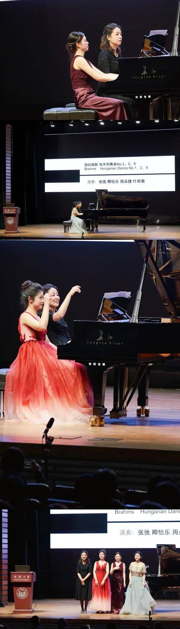 音乐会的最初,从讲人张弛教员取她的硕士生卿怡乐、周朵捷以及本科生叶雨萌一路,用三首做曲家勃拉姆斯的《匈牙利舞曲》向浪漫从义致敬,也为当天的“浪漫之乐”画上的句号!